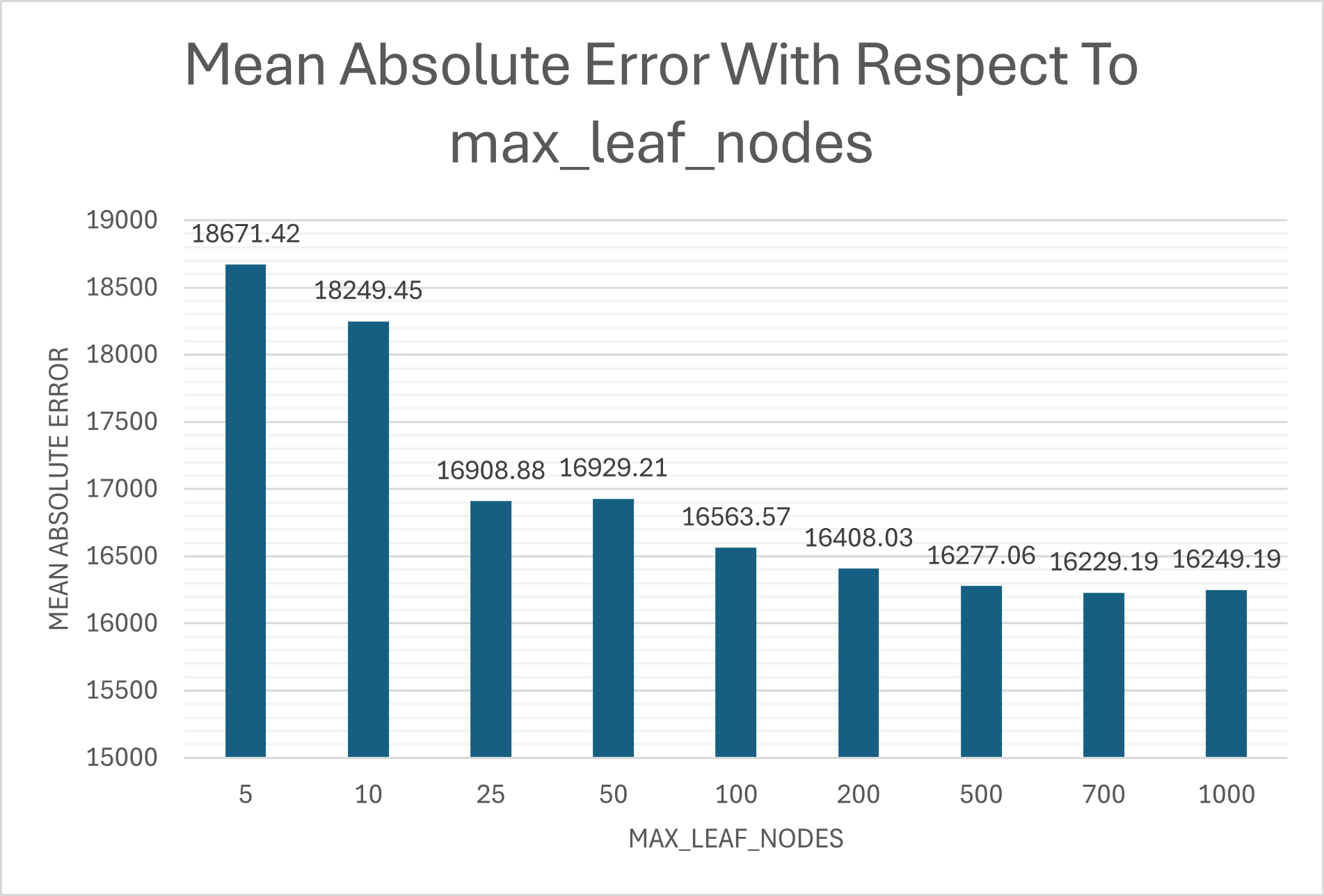 A list pairing each candidate with its MAE allowed me to select the ideal_leaf_nodes with an anonymous function:
